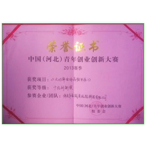 2013年中國(guó)(河北)青年創(chuàng)業(yè)創(chuàng)新大賽中榮獲十佳創(chuàng)新獎(jiǎng)獎(jiǎng)項(xiàng)。
