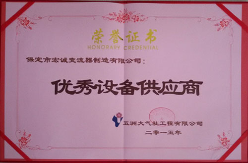 2015年榮獲五洲大氣社工程有限公司優(yōu)秀設(shè)備供應(yīng)商單位