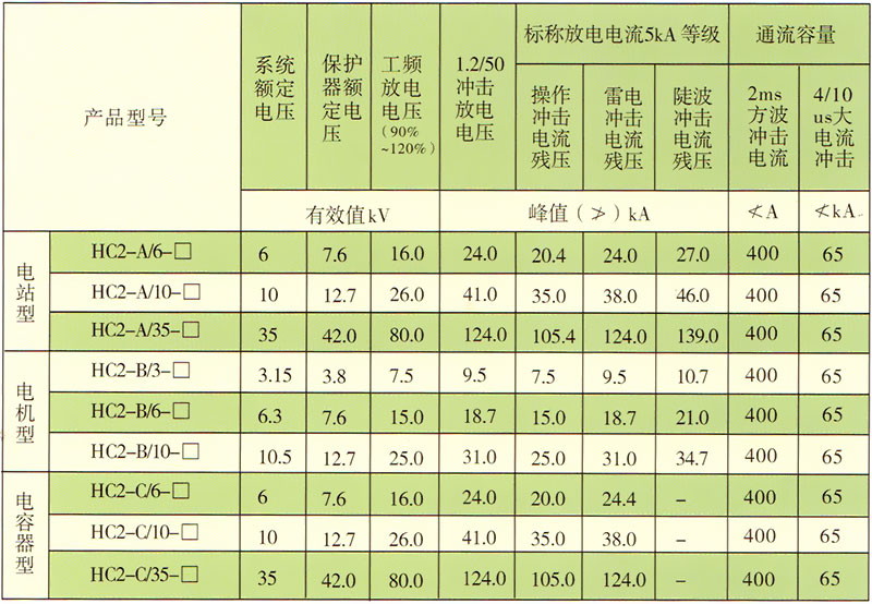 表一:HC1系列過電壓保護(hù)器主要技術(shù)參數(shù)