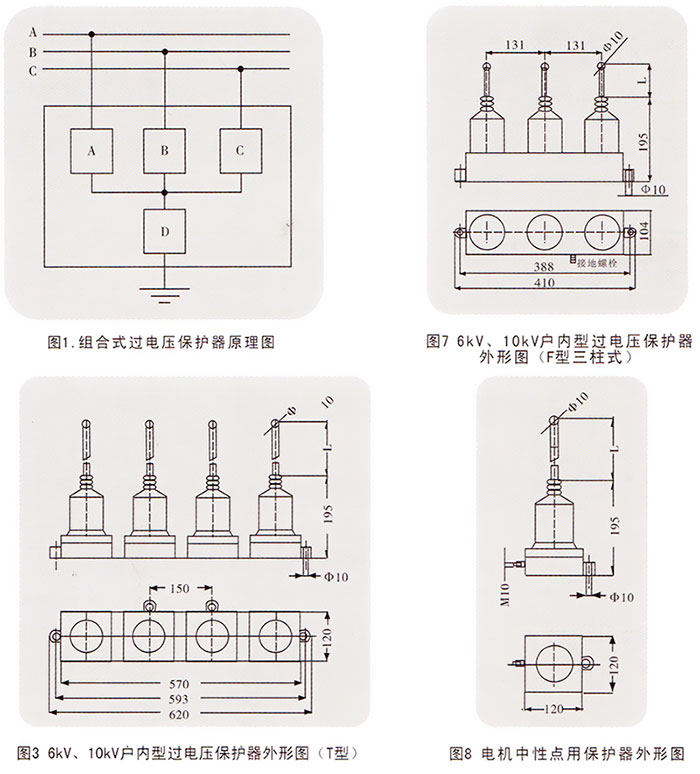 1、無間隙組合式過電壓保護(hù)器 2、串聯(lián)間隙組合式過電壓保護(hù)器 保護(hù)對象: