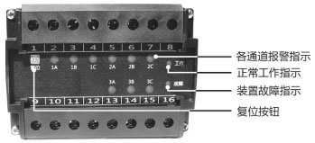 檢測(cè)各路運(yùn)行狀態(tài),當(dāng)任何一路保護(hù)時(shí),故障燈點(diǎn)亮。 |